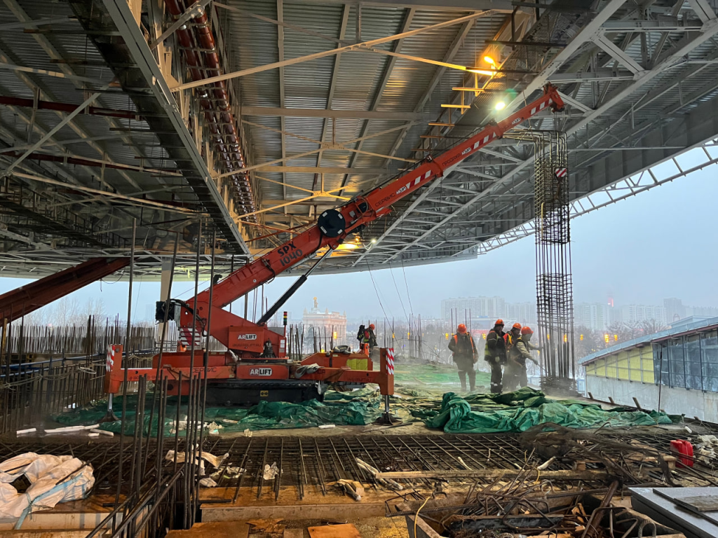 Например, в арендном парке ARLIFT есть мини-кран паук с рабочей высотой 31 м, которые поднимают 15,5 т. Это мини-кран JF545CDH-2 — таких всего два в России.