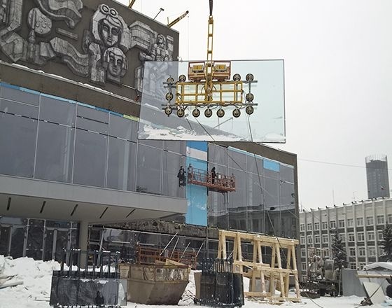 Кроме того, для монтажа стеклопакетов весом 300 килограммов применялся еще один вакуумный захват компании АРЛИФТ – ARLIFTER GS-500.