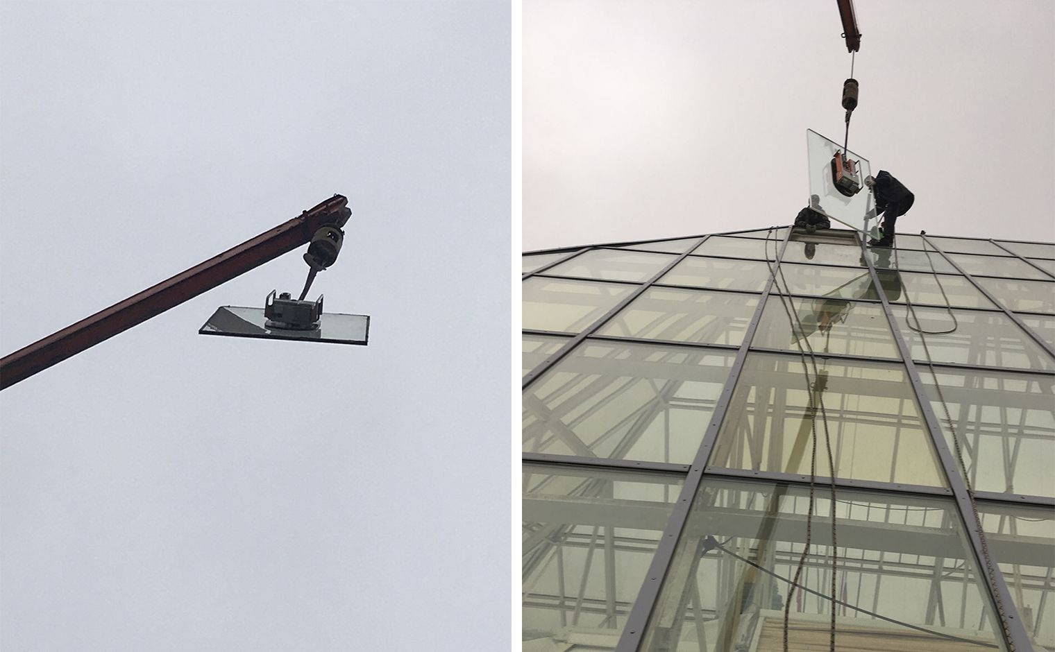 Стекла монтировались небольшие: 1,5 х 2 метра весом 230 килограммов. Монтаж занял всего лишь два дня.