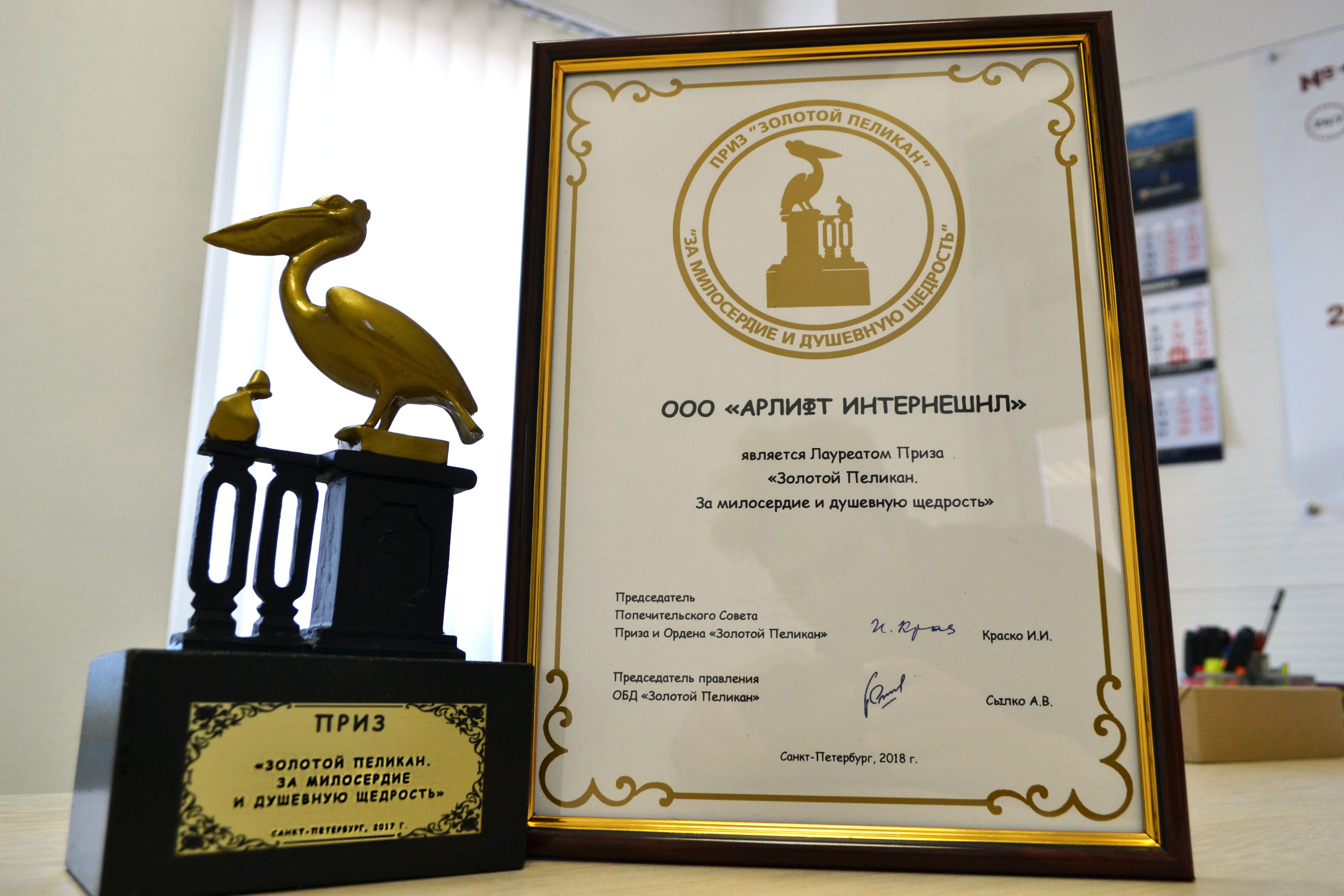 Компания АРЛИФТ получила награду благотворительного фонда «Золотой Пеликан»