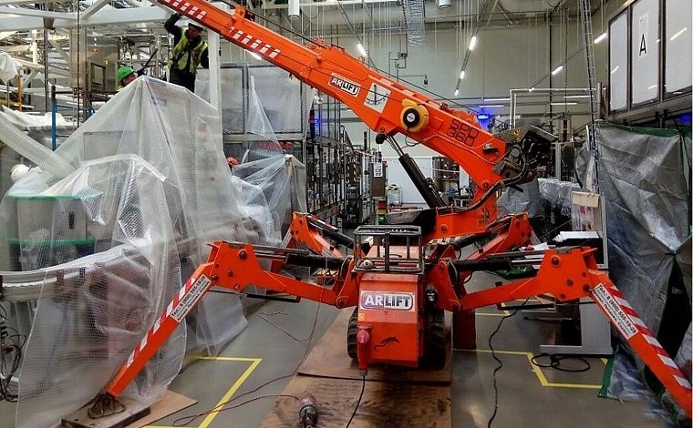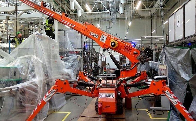 Благодаря электромотору и резиновым гусеницам мини-краном удалось выполнить монтаж металлоконструкций в «чистом» помещении, наполненным аппаратами для производства, не задев оборудования и не нанеся вреда выхлопными газами.