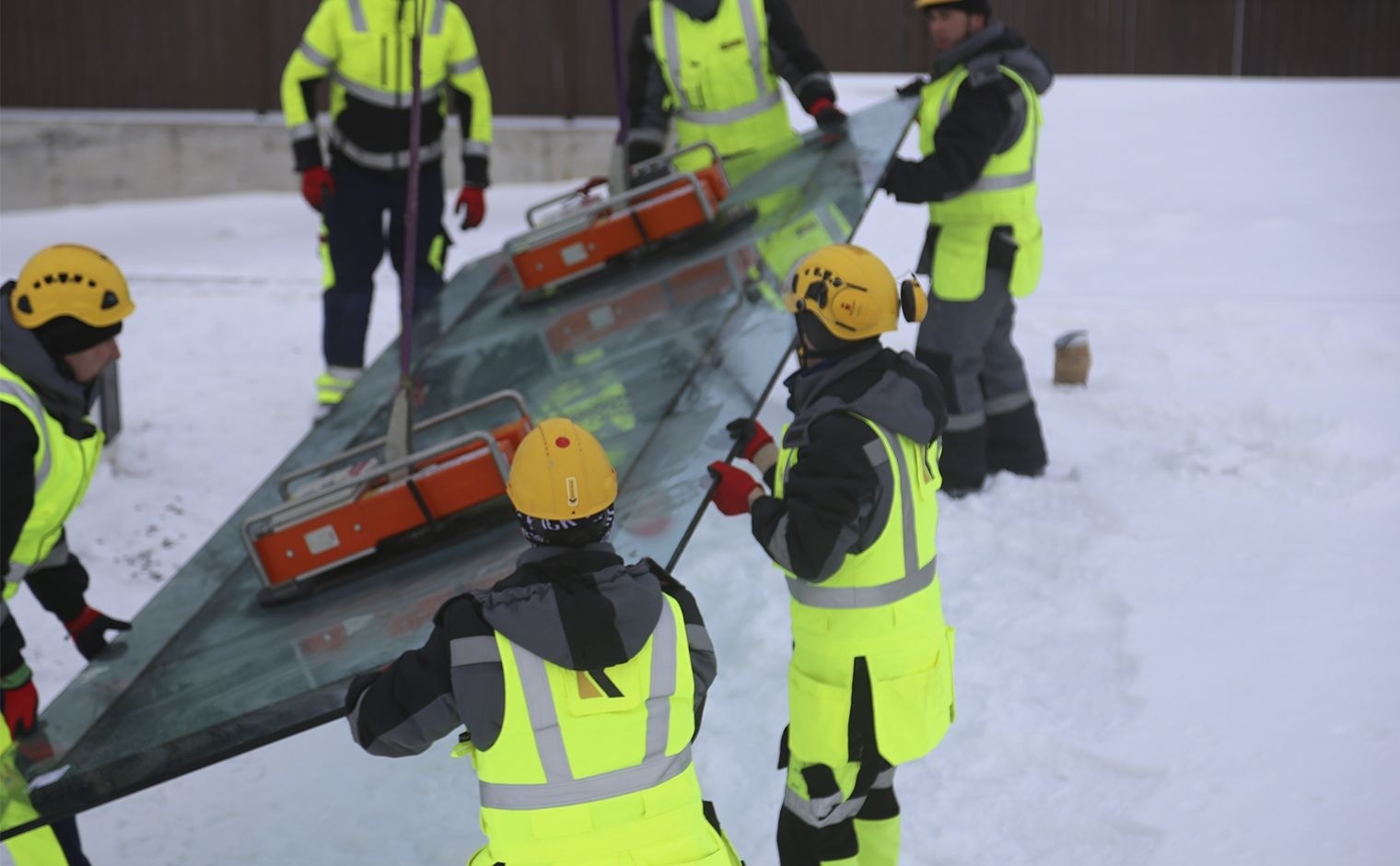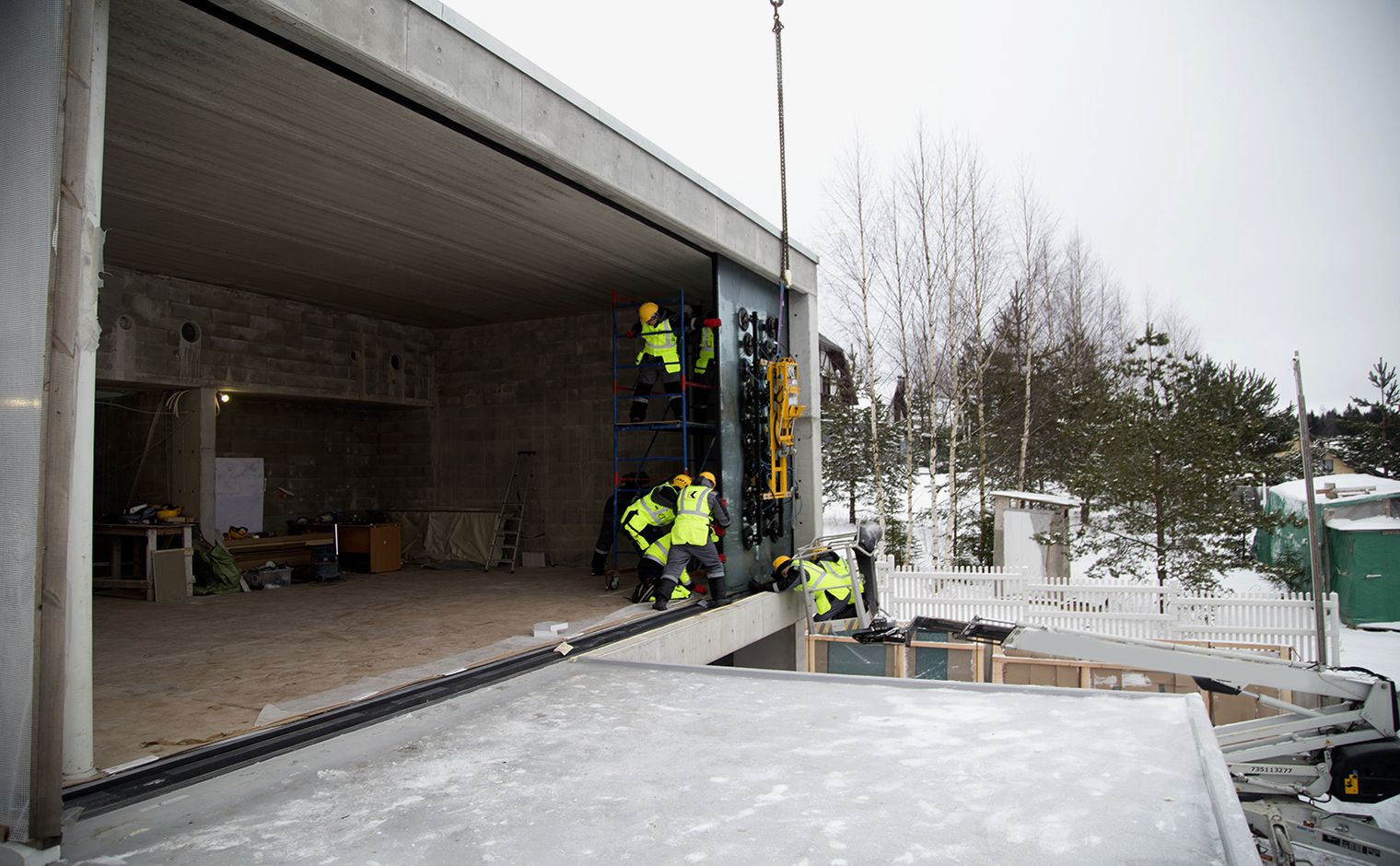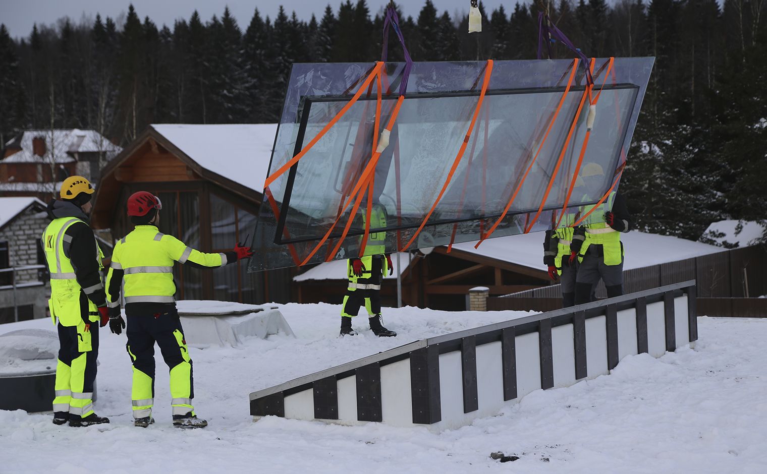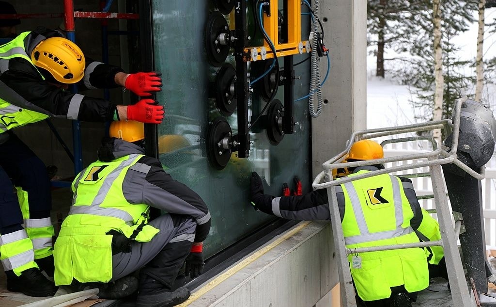 Монтаж стекла с помощью техники ARLIFT специалистами строительной компании KIVITALO был выполнен всего за два дня.