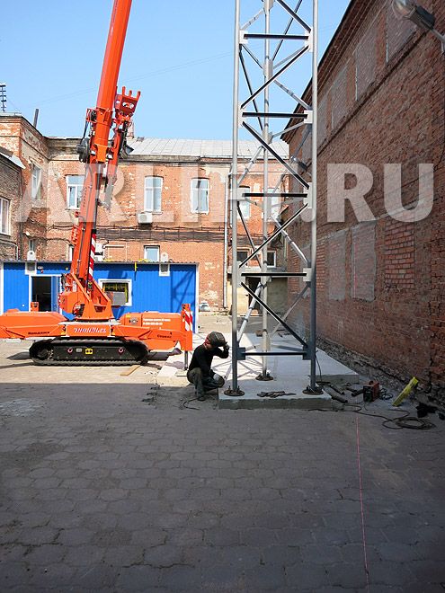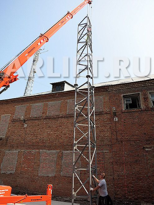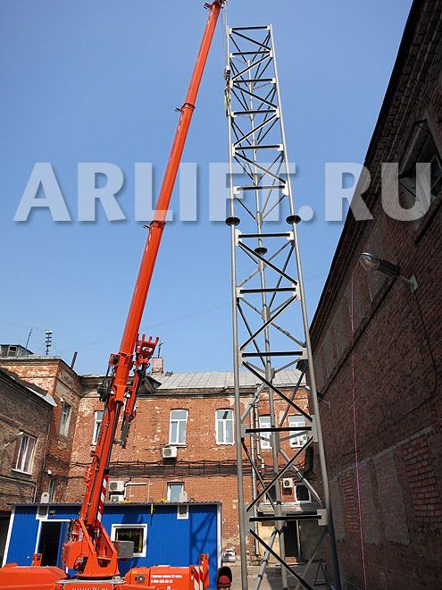 Наши объекты - Монтаж громоотвода с помощью мини-крана