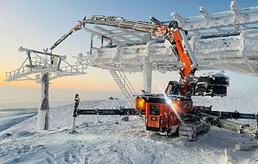 Экстремально сложный монтаж металлоконструкций на горном склоне с помощью мини-крана Jekko JF 545 CDH-2. Таких всего два на всю Россию.