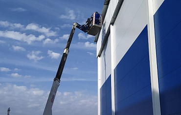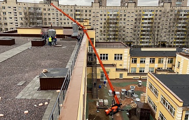 Фасадные работы и установку отливов произвела тринадцатиметровая спайдер-вышка компании Арлифт в Санкт-Петербурге.