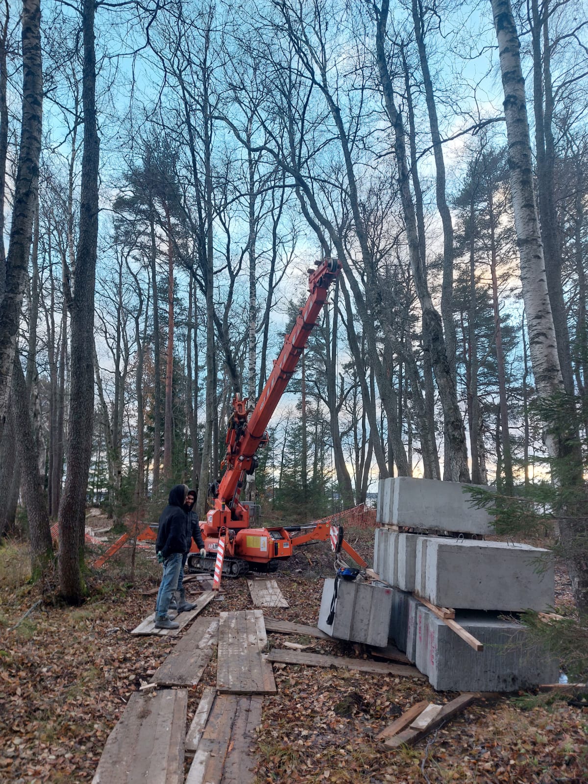 Наши объекты - Монтажные работы в лесу на берегу лесного озера