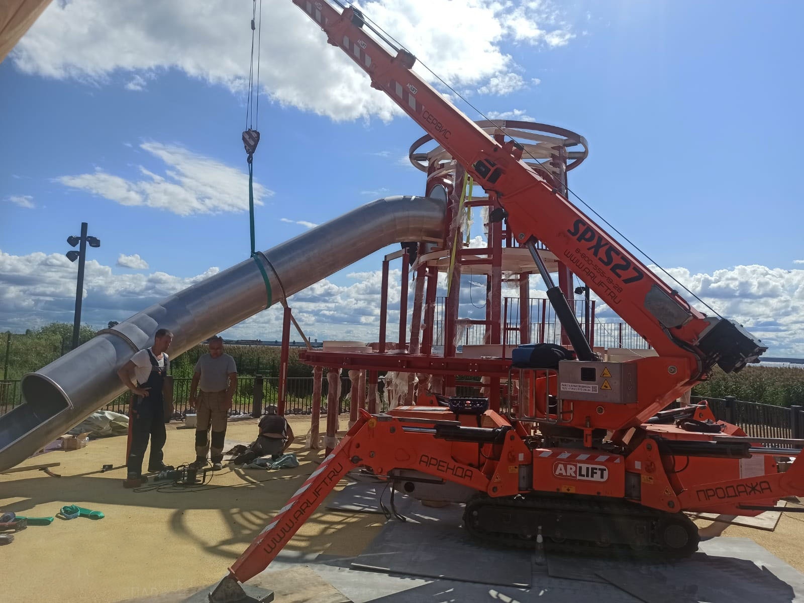 Встроенная интеллектуальная система демонстрирует вылет стрелы и вес поднимаемого объекта в настоящий момент времени, а пульт дистанционного управления способствует контролю и перемещению груза с максимальной точностью. Работать с краном не только просто, но и безопасно!Благодаря уникальному и современному оборудованию Арлифт все работы были выполнены в сжатые сроки.