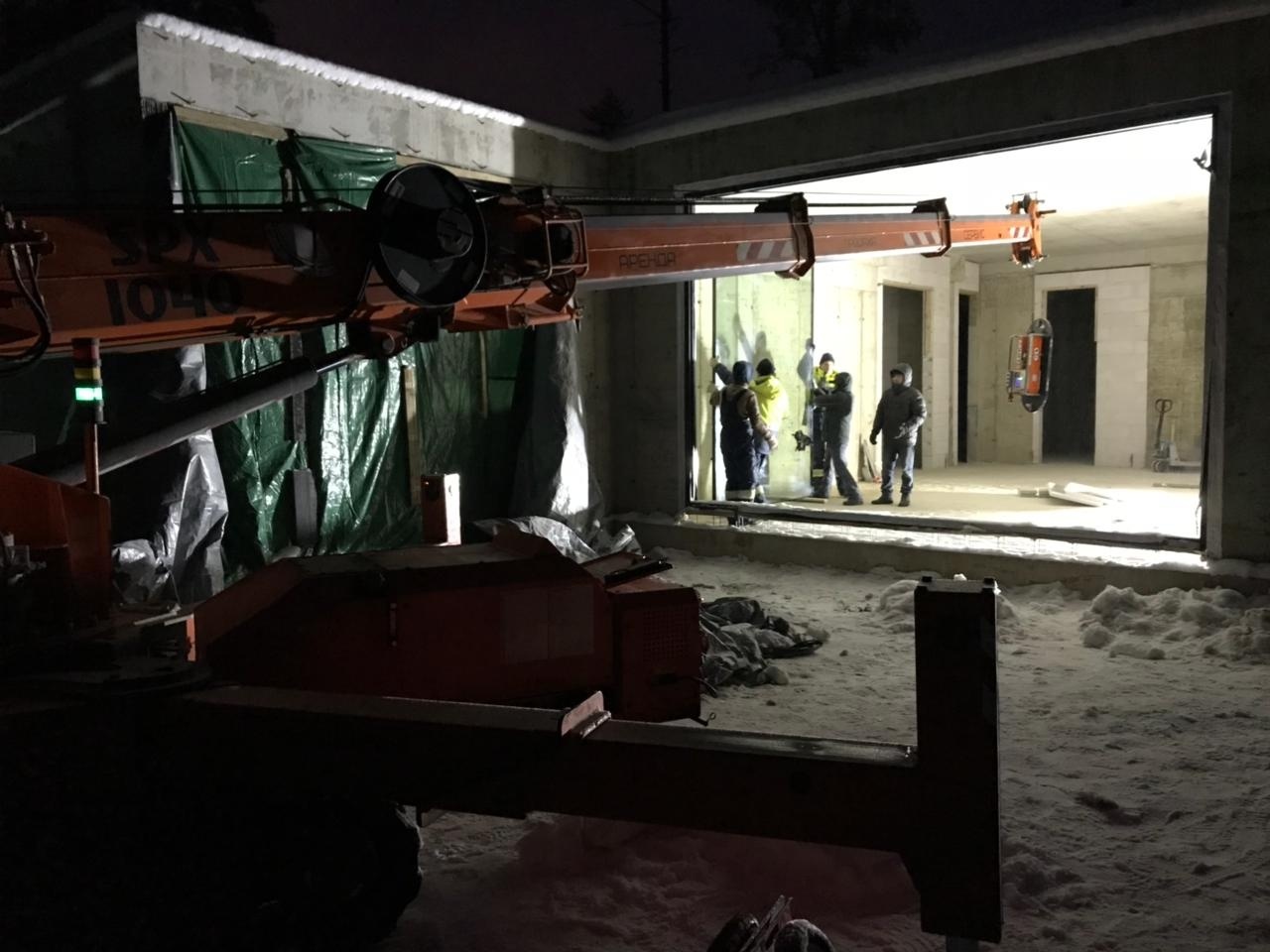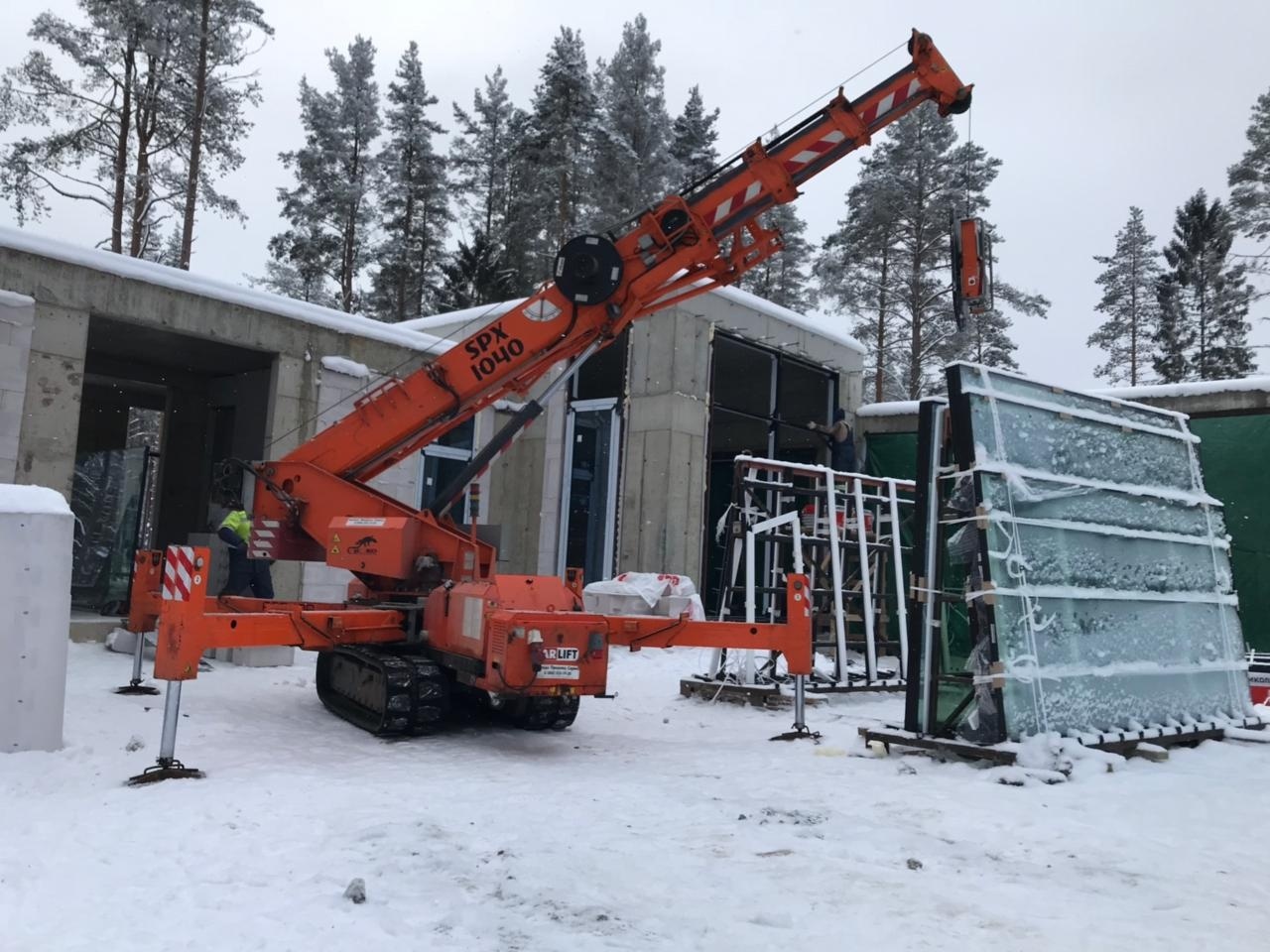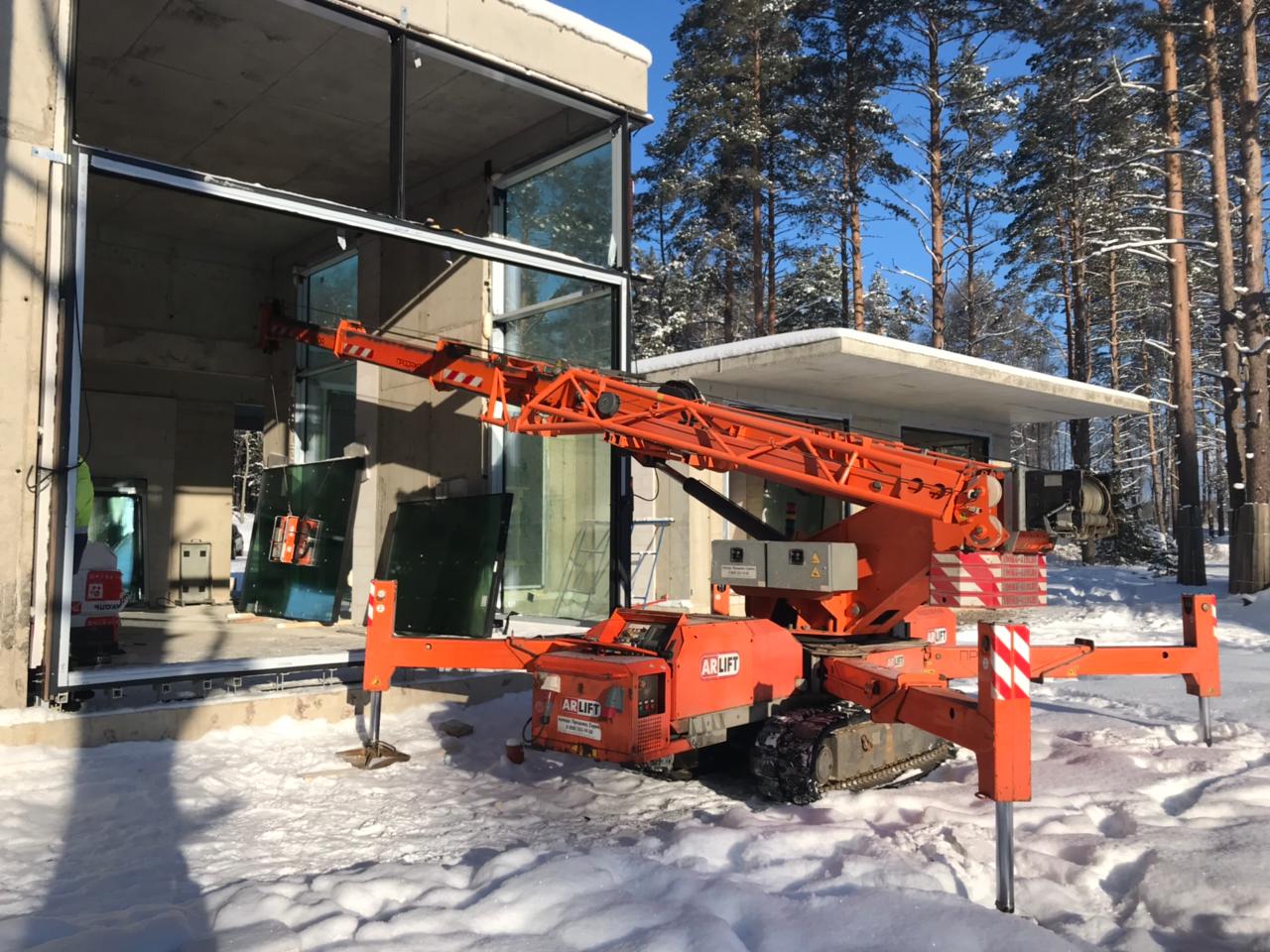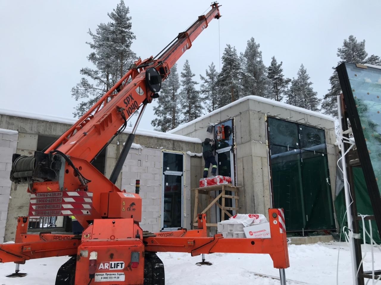 Поселок давно является популярным направлением для круглогодичного загородного отдыха со всеми условиями для полноценного проживания. Строительство поселка продолжается и по сегодняшний день. На одном из таких объектов мини-кран SPX1040 и вакуумный захват Arlifter GS-500 помогли установить крупногабаритные стеклопакеты весом до 400 кг. Главная сложность при монтаже заключалась в том, что все работы проводились при температуре -27° С. Но, как показывает практика, возможно выполнение монтажа и при более низких температурах. Вакуумный захват показал отличные результаты на объекте в Мурманске при -35°С. К тому же, продуманная система влагоотведения позволяет производить работы по монтажу и в дождь, и в снег.