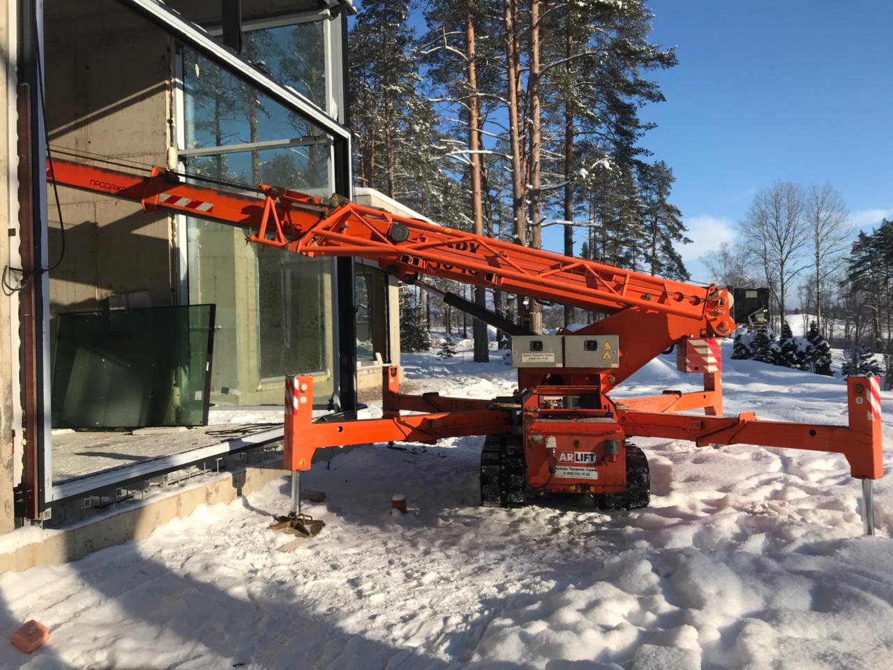 Наши объекты - Монтаж тяжелого стекла с помощью техники Арлифт