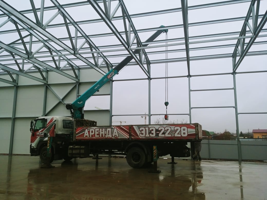 Наши объекты - Строительство ангара с помощью техники Арлифт