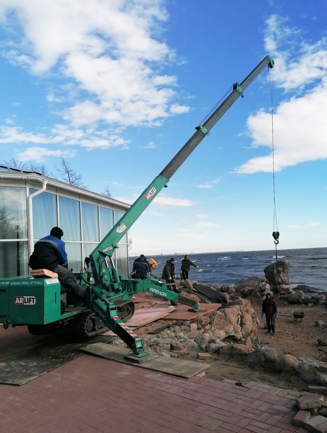 Мини-краны Арлифт — уникальное оборудование, предназначенное для решения разнообразных задач, начиная от монтажа опалубки на строительной площадке, заканчивая ландшафтными работами. В одном из пригородов Санкт-Петербурга для благоустройства территории ресторана использовали мини-кран Арлифт МС-405. Компактная и надежная техника создана специально для различных манипуляций с грузом до 4 тонн, в том числе и для перевозки тяжелых валунов.