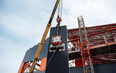 Вертикальный монтаж сэндвич-панелей вакуумным захватом