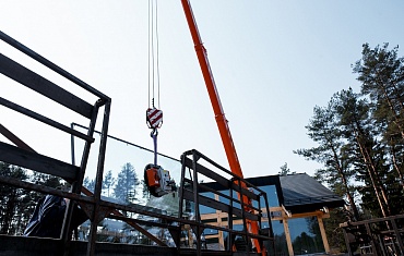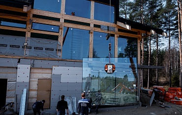 Панорамное остекление коттеджа вакуумных захватом АРЛИФТ