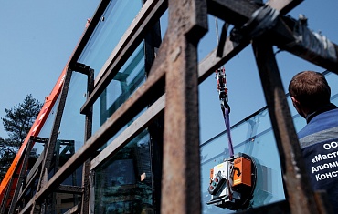 Монтаж стекла. Работа мини-краном и вакуумным захватом