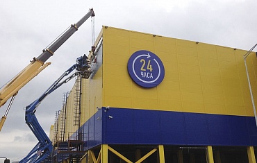 Облицовка фасада здания гипермаркета
