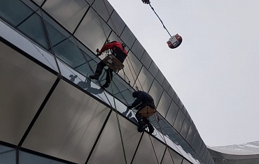 Остекление коттеджа с помощью мини-крана и вакуумного захвата