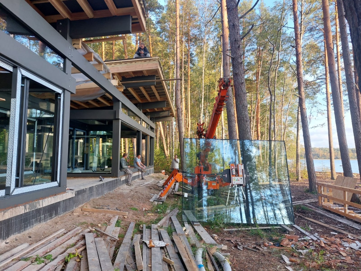 Монтаж стекла техникой Арлифт (мини-кран и вакуумный захват)