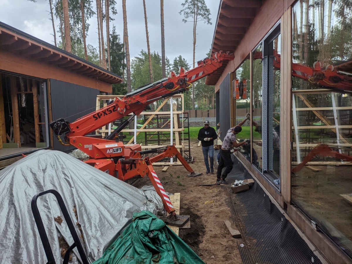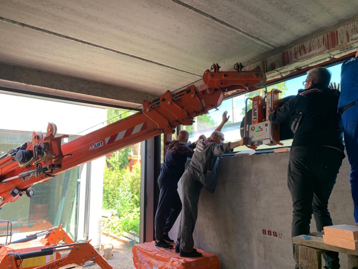 Остекление изнутри с помощью вакуумного захвата и мини-крана Арлифт