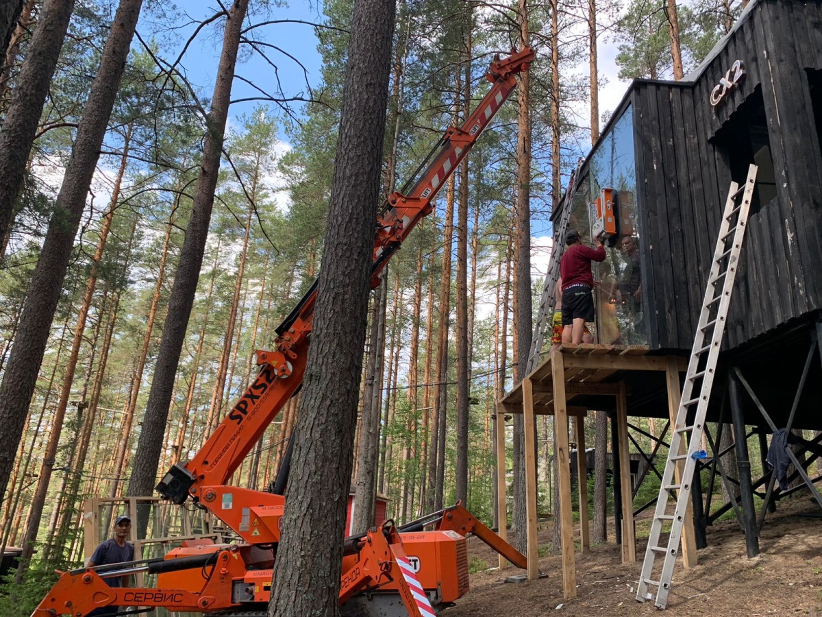 Остекление на ограниченном пространстве с помощью мини-крана Арлифт